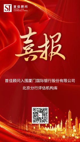 熱烈祝賀北京首佳房地產(chǎn)評估有限公司:成功入圍廈門國際銀行股份有限公司北京分行評估機(jī)構(gòu)庫!