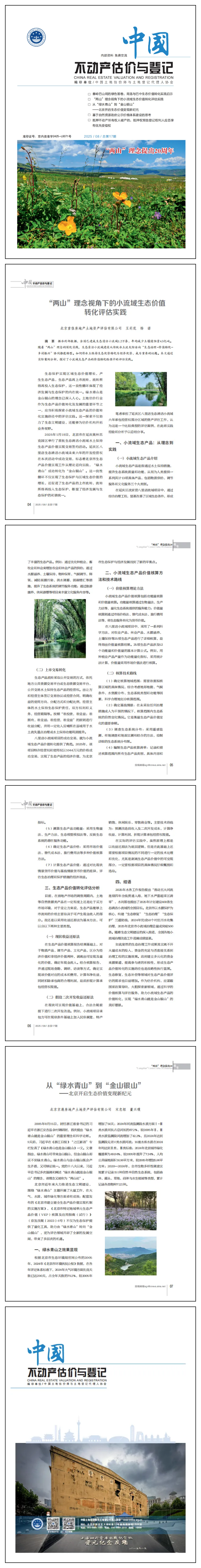 在“兩山”理念深化實(shí)踐與生態(tài)產(chǎn)品價(jià)值實(shí)現(xiàn)的背景下,小流域生態(tài)價(jià)值轉(zhuǎn)化成為推動綠色發(fā)展與鄉(xiāng)村振興的重要紐帶。生態(tài)清潔小流域建設(shè)從傳統(tǒng)水土流失防治向“生態(tài)治理-價(jià)值轉(zhuǎn)化-鄉(xiāng)村振興”協(xié)同推進(jìn)轉(zhuǎn)型,如何將水土保持生態(tài)優(yōu)勢轉(zhuǎn)化為經(jīng)濟(jì)優(yōu)勢,成為當(dāng)下重要的議題。 首佳顧問評估與咨詢顧問事業(yè)部副總經(jīng)理王莉花、副總估價(jià)師楊諾在《中國不動產(chǎn)估價(jià)與登記》2025/08/總第17期P27刊發(fā)文章《“兩山”理念視角下的小流域生態(tài)價(jià)值轉(zhuǎn)化評估實(shí)踐》,通過實(shí)際案例分析,探討了小流域生態(tài)產(chǎn)品的價(jià)值轉(zhuǎn)化路徑中的評估實(shí)踐,為生態(tài)價(jià)值轉(zhuǎn)化評估提供了具有參考性的實(shí)踐經(jīng)驗(yàn)。