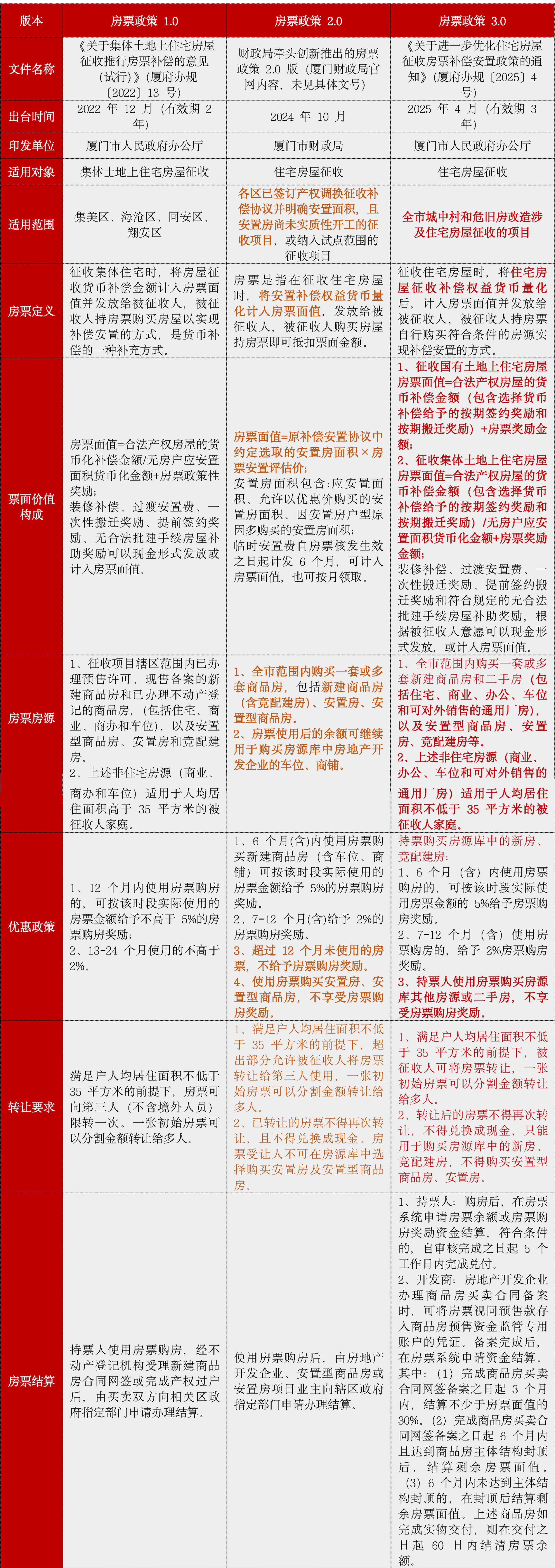 廈門市3版房票政策出臺時間間隔較短,緊隨樓市變化做密集調(diào)整。不同階段、不同適用范圍下,內(nèi)容相差較大,政策演變及3.0版新政分析如下: